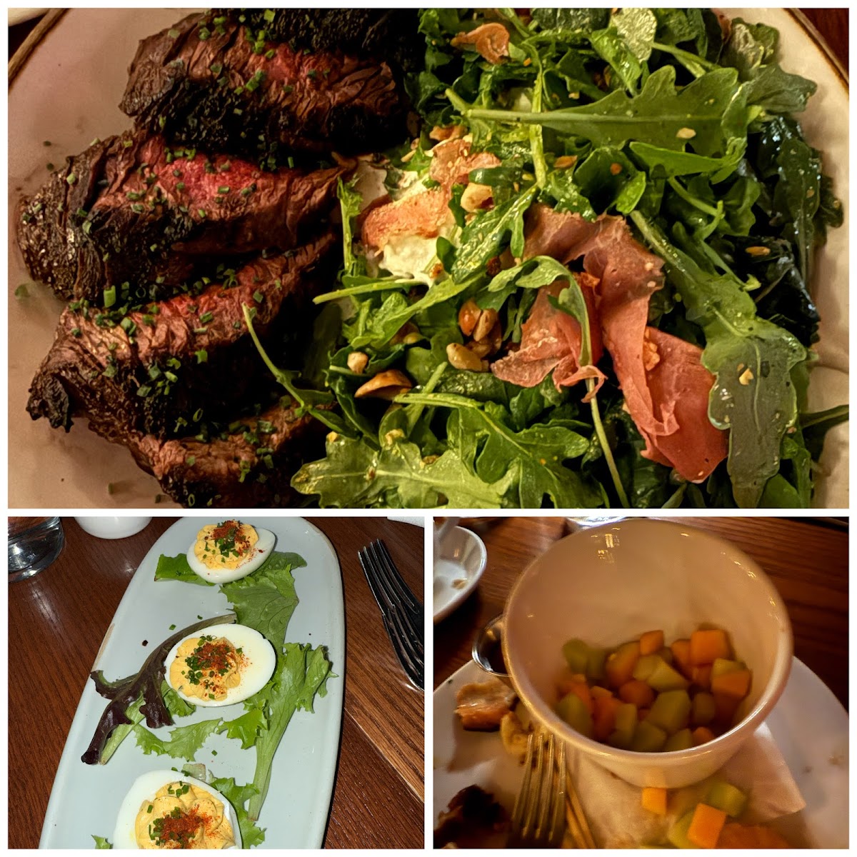 The menu leans into thoughtful, contemporary takes on classic American dishes, featuring standout options like an 8 oz grilled filet mignon, grilled hanger steak, and fresh seafood plates such as seared tuna and scallops. Brunch is a popular draw too, with offerings like eggs benedict and roasted vegetable salads paired alongside refreshing mocktails and a solid wine list. Sides like crispy fingerlings, broccolini, and mac & cheese add familiar but well-executed touches that work well alongside the mains.
